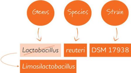 Alle neuen Bezeichnungen beginnen mit «L», damit die Abkürzung weiterhin bestehen kann: Limosilactobacillus reuteri DSM 17938 kann weiterhin als L. reuteri DSM 17938 geschrieben werden.